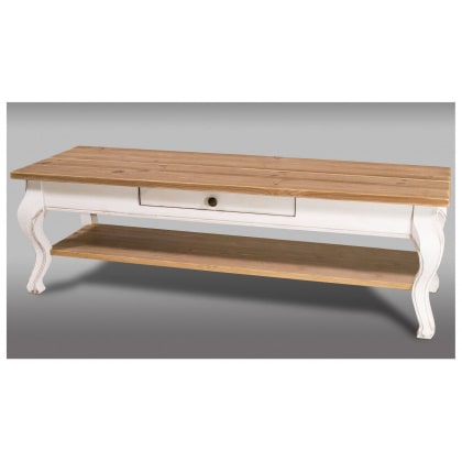 Antiikses stiilis täispuidust sahtliga TV alus. Mõõdud: 138x46x kõrgus 43cm. Viimistlus: Lauajalad töödeldud valge peitsiga ja lauaplaat antiikpeitsiga. Samas sarjas olemas abilaud, diivanilaud, söögilaud. Toodetud Eestis!