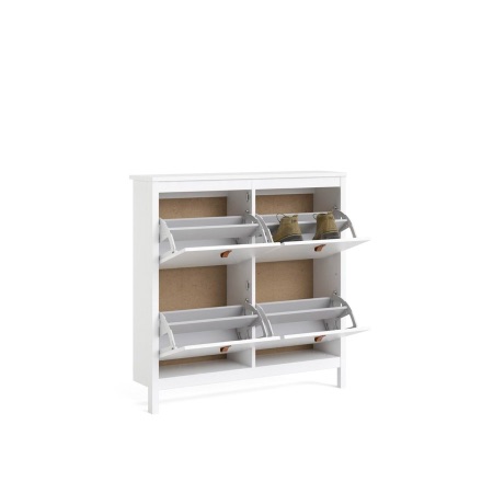 Jalatsikapp mis on valmistatud mööbliplaadist ja viimistletud valges toonis. Kapil on 4 kaldsahtlit ning lisaks saab kapi käepidemeid vahetada, komplektis on metallist ja nahast pidemed.