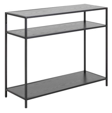 Konsoollaud mis on tehtud mustast metallkarkassist. Laua vaheplaadid on lamineeritud kattega mööbliplaadist ning viimistletud musta tammega.