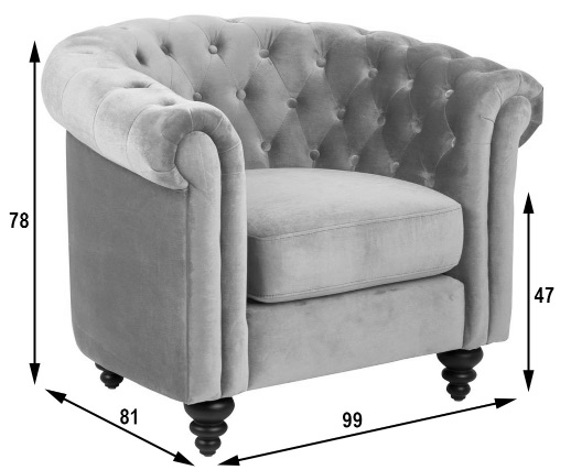 Klassikalise välimusega tugitool mis on kaetud tumehalli sametise kangaga, ning karkass tehtud puidust ja mööbliplaadist. Tooli jalad on puidust ning viimistletud musta värviga.
