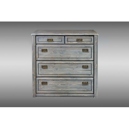 Valmistatud täispuidust, kummutil on vaikselt sulguvad sahtlid, mis on sügavad ja mahukad. Saadaval ka teistest viimistlustes: valge vanutatud, hall vanutatud, pruun vanutatud